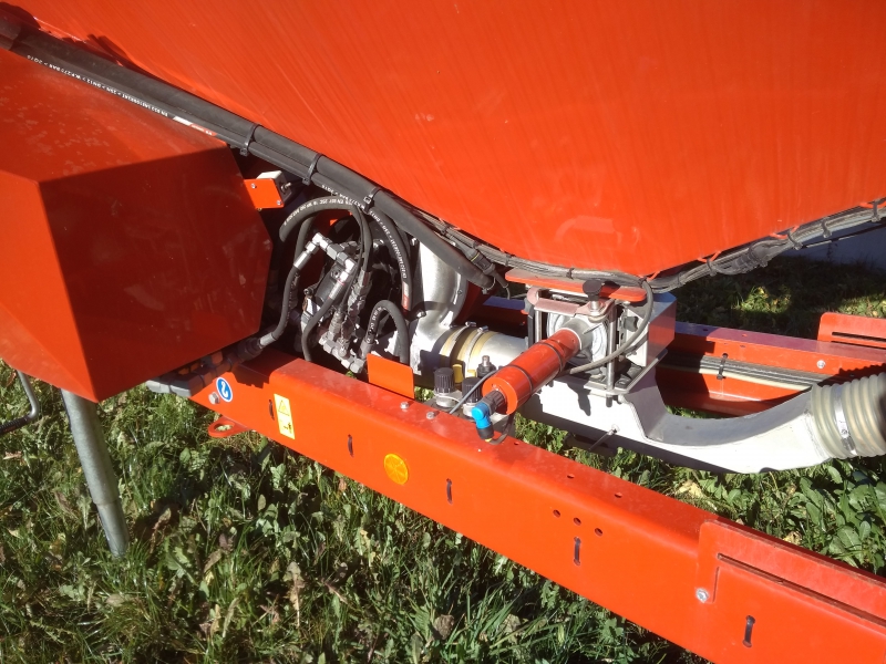 Centrální mazání. Záběr 4 m, čtyřkomorový zásobník s objemem 2 x 2 300 l + 2 x 500 l.